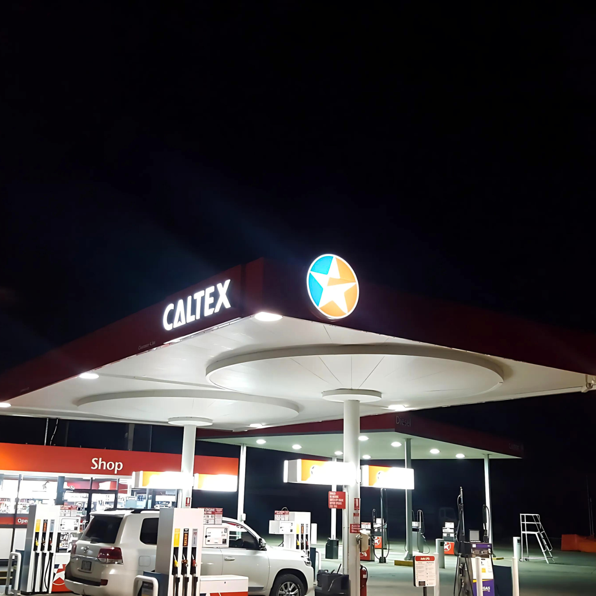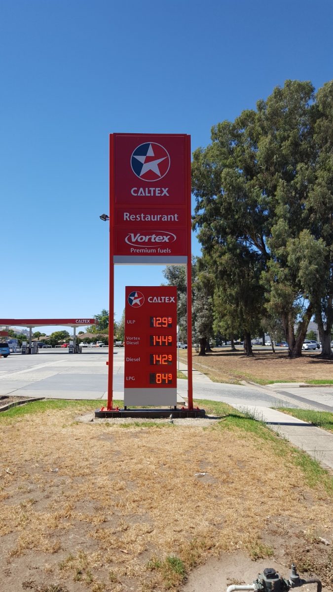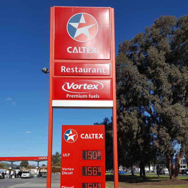 Installed new Caltex branding to the canopy and forecourt signage at this site along with a 7m pylon sign, and LED price board.