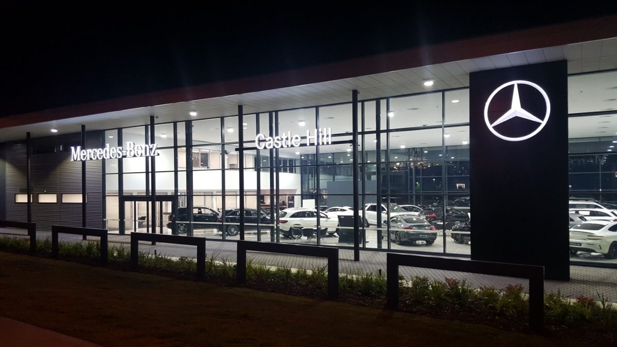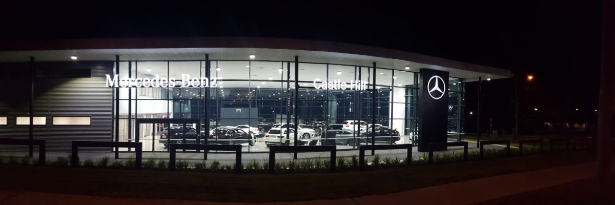 PCA were engaged by the dealer and the builder Hutchinson Builders to supply and install the Mercedes-Benz branding to the new dealership in Castle Hill NSW. We installed several illuminated lettersets to the building, 6m pylon and other external and internal signage.