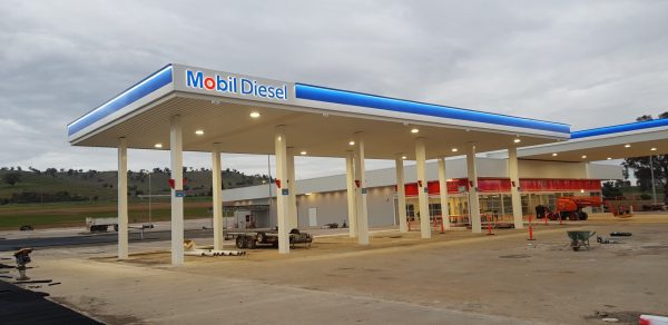 PCA were engaged to install the Mobil branding at this large new Truck Stop site on the Hume Hwy in Coolac NSW. This project consisted of installing the fascia signage to 2x large canopies (1x Truck) & (1x Car). Completing all the Mobil Synergy forecourt branding and the cladding of 24x canopy columns. Works were completed on behalf of Xpress Fuels.