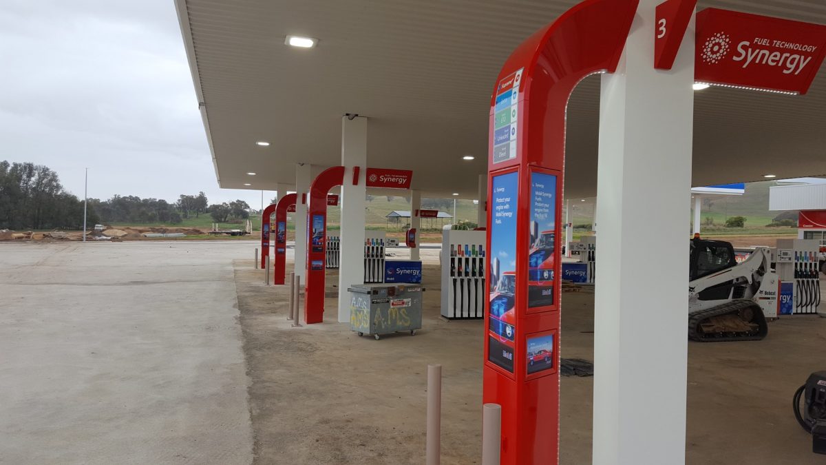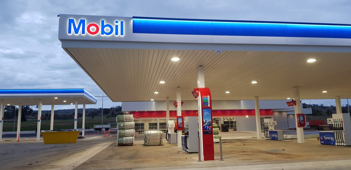 PCA were engaged to install the Mobil branding at this large new Truck Stop site on the Hume Hwy in Coolac NSW. This project consisted of installing the fascia signage to 2x large canopies (1x Truck) & (1x Car). Completing all the Mobil Synergy forecourt branding and the cladding of 24x canopy columns. Works were completed on behalf of Xpress Fuels.
